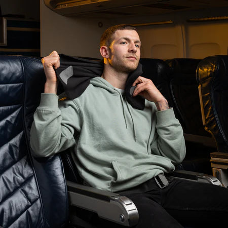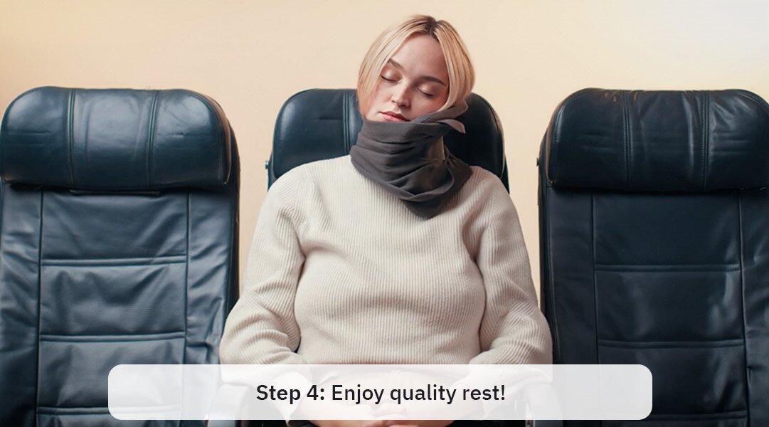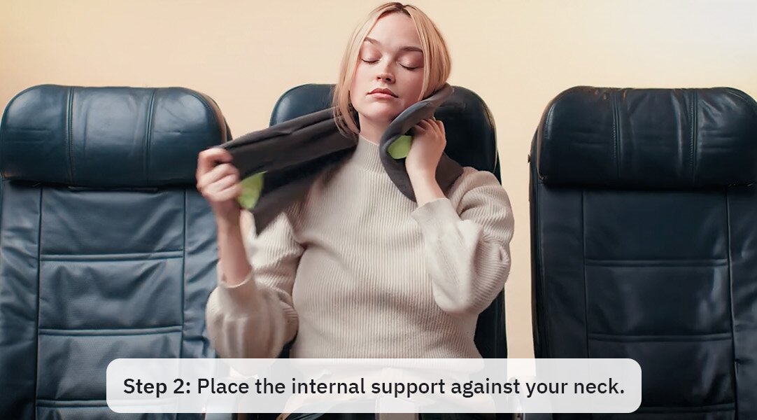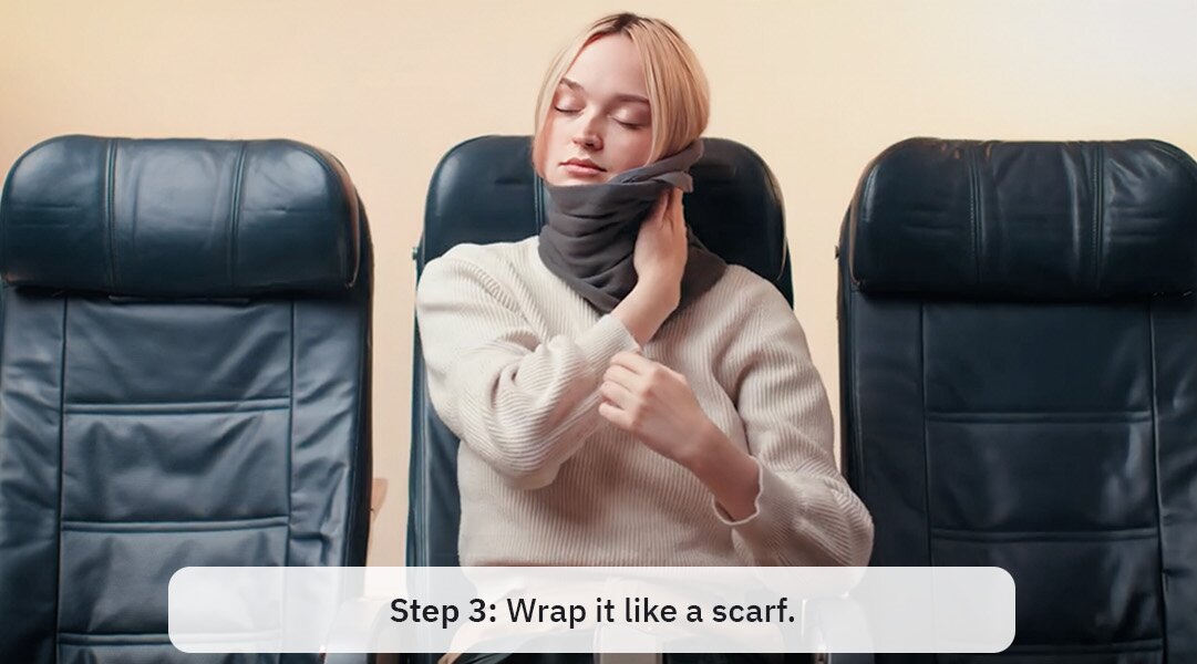 It’s incredibly easy to use: Undo the fastening, position the internal support comfortably against your neck, and wrap it like a scarf. For added versatility, you can also place it between your neck and seat for support while reading, watching movies, or relaxing during travel.